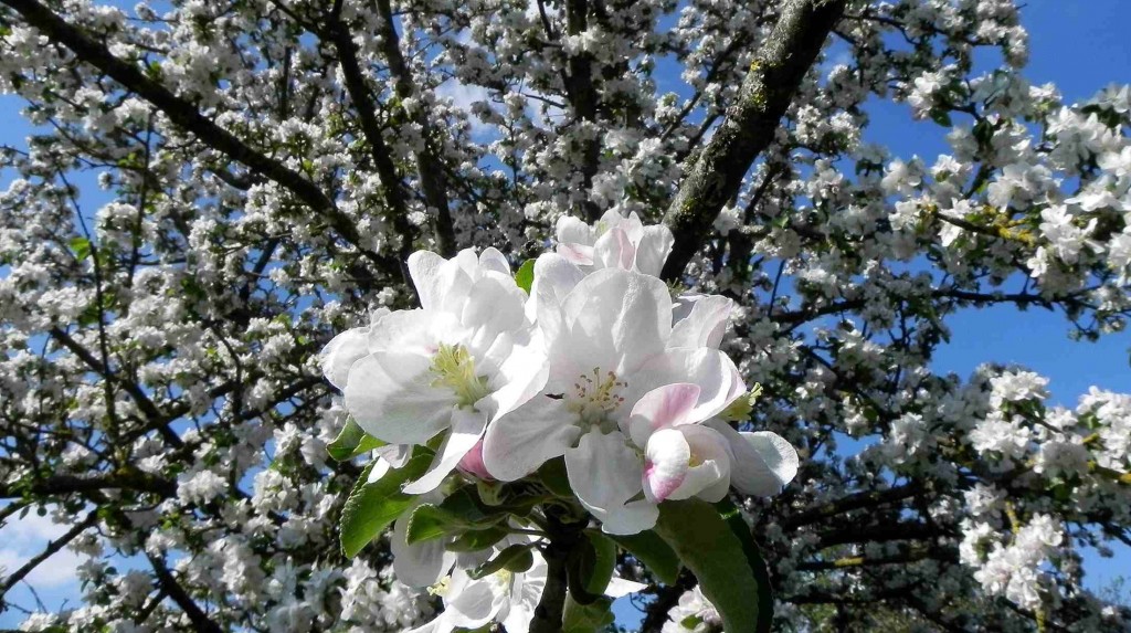 L’ éclosion fait passer la fleur de pommier ,graduellement ,du rose au blanc.